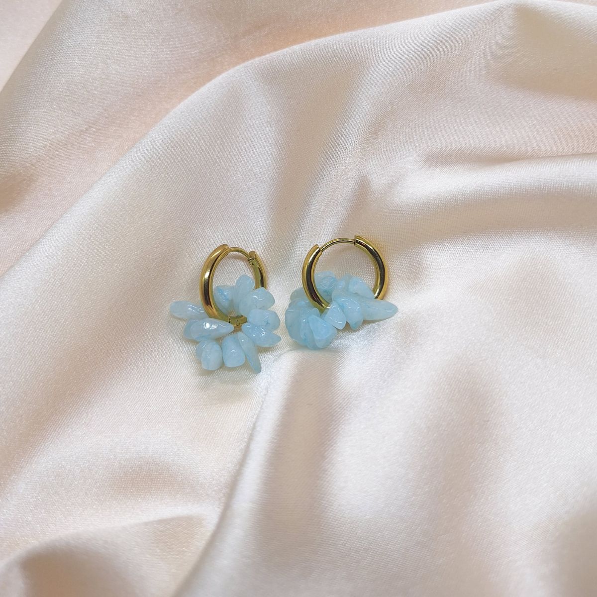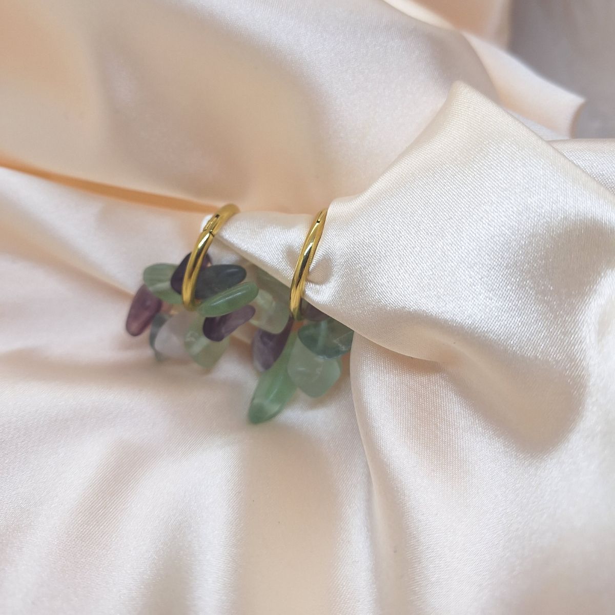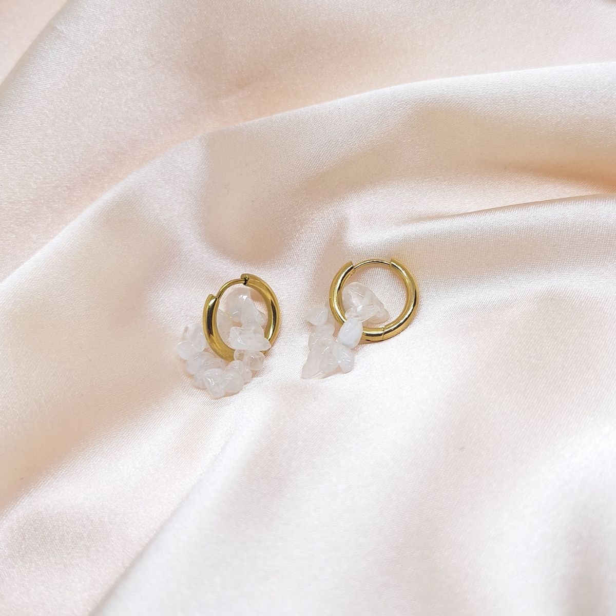 Naušnice Kristalni krug oblikovane su kao lagana i pročišćena kompozicija u kojoj se sirova struktura kamena spaja s jednostavnom metalnom formom. Mali kružni element služi kao nosiva baza, dok nizani kristali unose teksturu, svjetlo i suptilno kretanje.